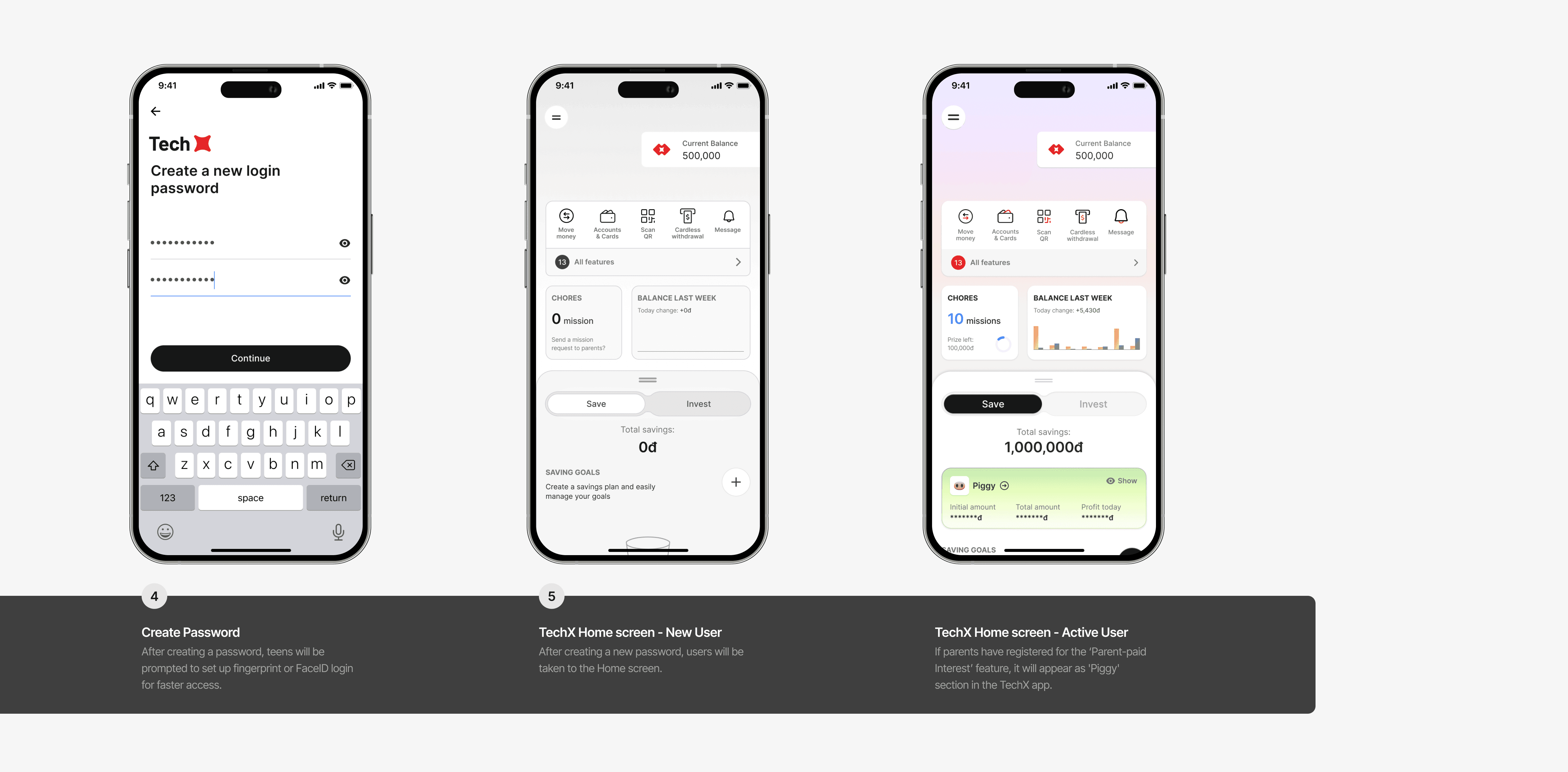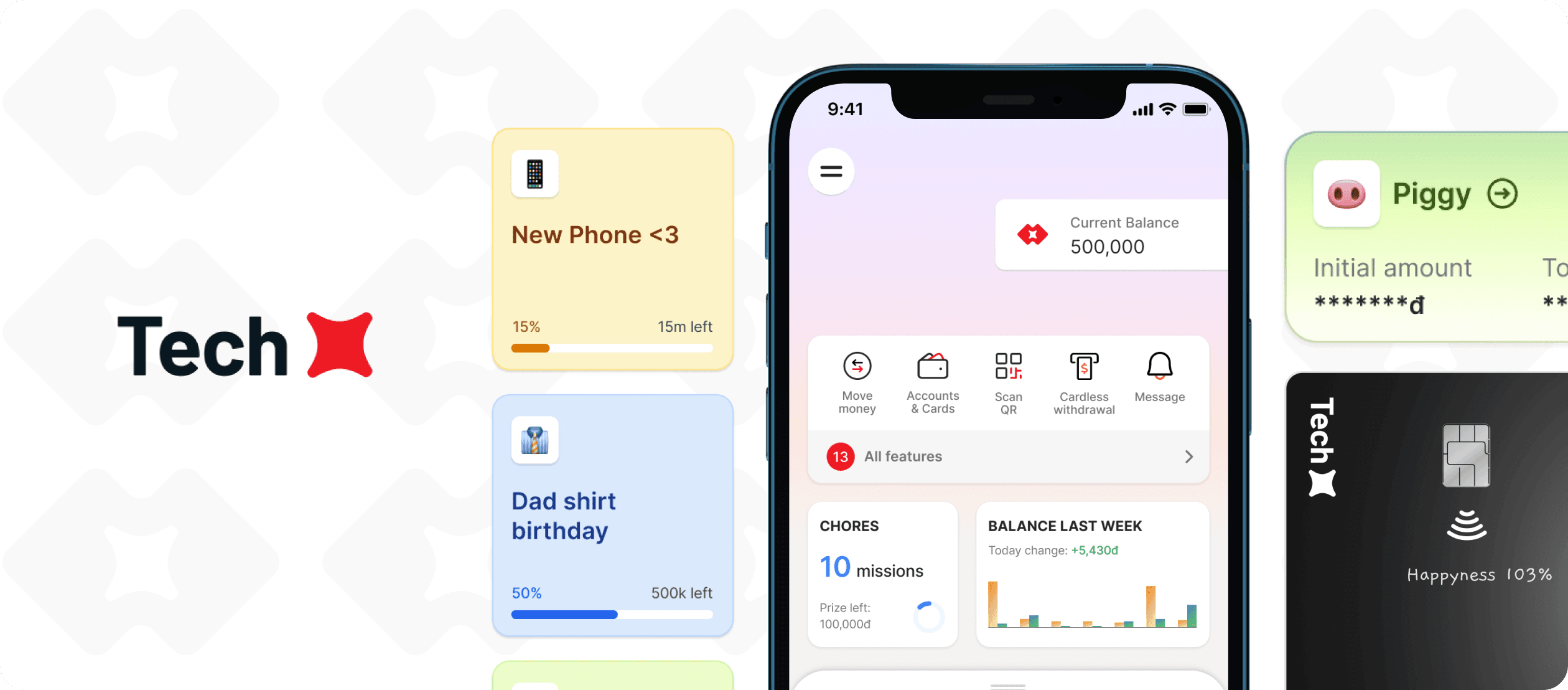 TechX - powered by Techcombank is a concept banking app designed for teens, offering parents control over their teen's spending while teaching them fundamental financial skills.