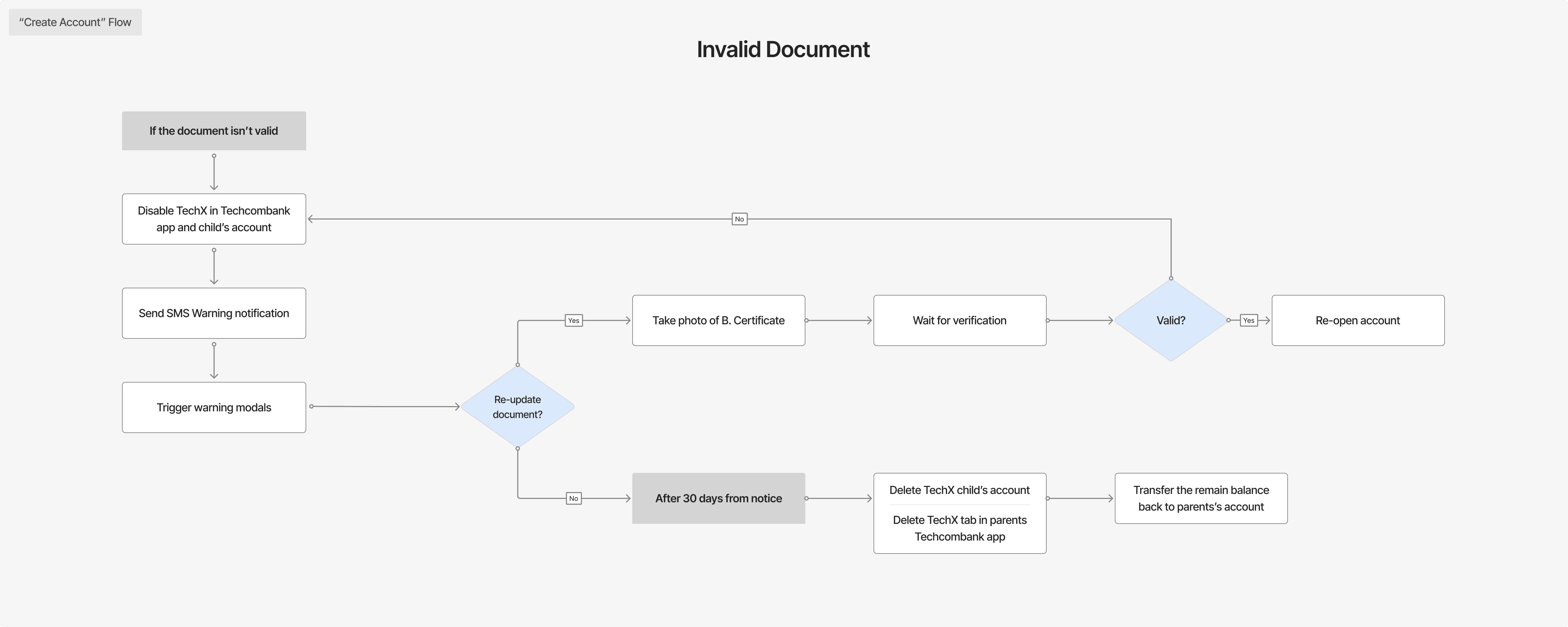 • Keep disabling TechX in both child and parents’ app and auto-reactivate if the document is confirmed valid
